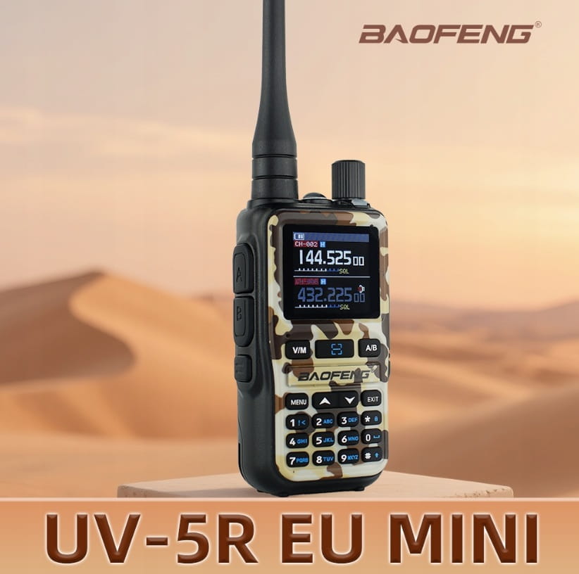 Radiotelefon Baofeng UV-5R EU Mini kolor urządzenia CAMU jest profesjonalnym radiem krótkofalarskim, które idealnie sprawdzi się w pracy, do rodzinnych wyjazdów, spacerów itp. Baofeng UV-5R EU Mini to dwupasmowy radiotelefon (duobander) o mocy 5 watów z kolorowym wyświetlaczem, klawiaturą DTMF i funkcją Dual Watch iszybkiego szukania częstotliwości.